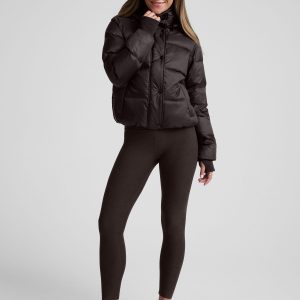 This puffer jacket has side pockets and ribbed sleeve cuffs with thumbholes for when your hands get cold. A hidden interior bungee at waist means you can adjust to an even cozier fit. Oh. and there’s a hood to keep your head warm. too. Clearly we’re fans of staying cozy.