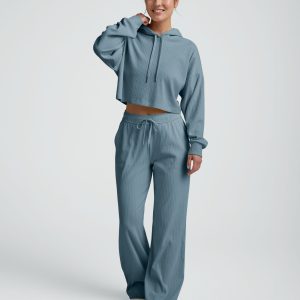 Inhale. Exhale. Drop your shoulders. Unclench your jaw. Repeat. Similarly. the relaxed fit Easy Ribbed Cropped Hoodie is made for adding a little ease to your day. Make it a set with the Breathe Easy Ribbed Wide Leg Pant.