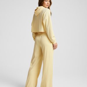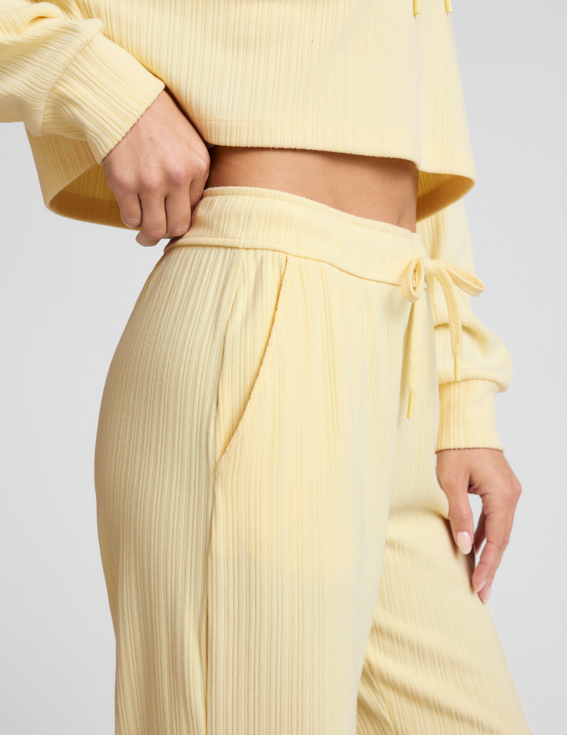 Inhale. exhale . drop your shoulders. unclench your jaw. Similarly. the Breathe Easy Ribbed Wide Leg Pant is made for adding a little relaxation to your day. The pants are equipped with an elastic waistband with an adjustable drawcord for your best fit.