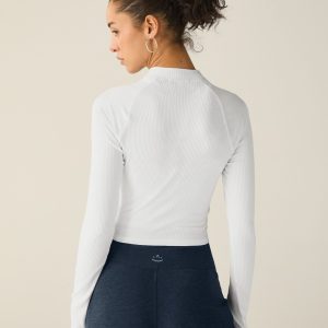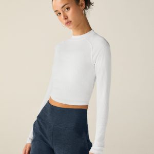 Sleek. modern. flattering. This long-sleeve cropped top is made of our comfortable. molds-to-your-body Off Duty Rib fabric. The ribbed texture has just the right amount of stretch to streamline your silhouette. Pair it over trousers for a dimensional. fashion-forward outfit. or keep things casual with leggings. joggers. or jeans.