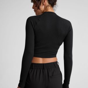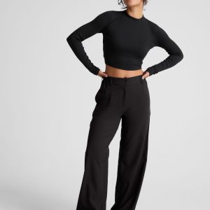 Sleek. modern. flattering. This long-sleeve cropped top is made of our comfortable. molds-to-your-body Off Duty Rib fabric. The ribbed texture has just the right amount of stretch to streamline your silhouette. Pair it over trousers for a dimensional. fashion-forward outfit. or keep things casual with leggings. joggers. or jeans.