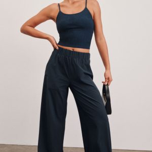 Easy and breezy is the life for these supersoft. silky and flowy pants. Made of our airy. lightweight Stretch Woven fabric with a simple yet flattering wide leg design. and elastic waist that tailors to fit you like no other. Wear these to work. all weekend long. while traveling; basically any moment when you want that perfect combination of comfort and style.