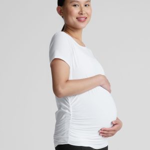 The soft and easy everyday maternity tee to carry you from early pregnancy all the way into motherhood. Made from our incredibly soft Featherweight Spacedye fabric. this short sleeve maternity t-shirt is complete with curved hem and longer length for more coverage. with shirred side seams so you get an impeccable fit all through pregnancy.