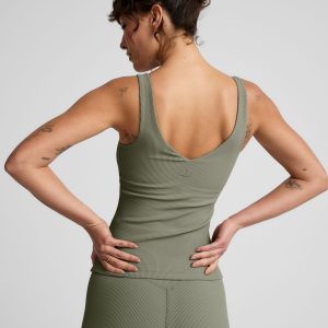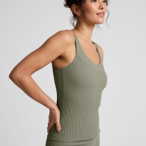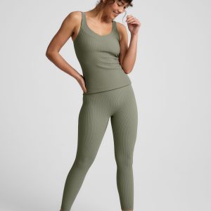 Equipped for workouts. styled for life. This ribbed tank makes everyday outfitting easy. with overlap detail on neckline and built-in bra. When it’s time for a workout. hugs-just-right compression helps you feel supported. plus it’s moisture wicking to keep you cool. Waist length for pairing with both your everyday bottoms line jeans. and the Impulse High Waisted Legging made of the same smooth. ribbed fabric.
