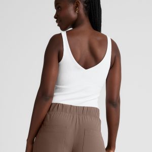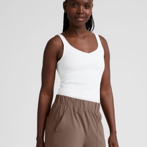Equipped for workouts. styled for life. This ribbed tank makes everyday outfitting easy. with overlap detail on neckline and built-in bra. When it’s time for a workout. hugs-just-right compression helps you feel supported. plus it’s moisture wicking to keep you cool. Waist length for pairing with both your everyday bottoms line jeans. and the Impulse High Waisted Legging made of the same smooth. ribbed fabric.