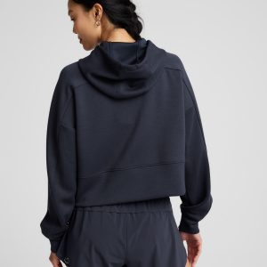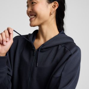 Level up your sweats. Slip on the SoftSpring Full-Zip Hooded Jacket that has a dense. springy texture and a boxy fit for extra coziness.