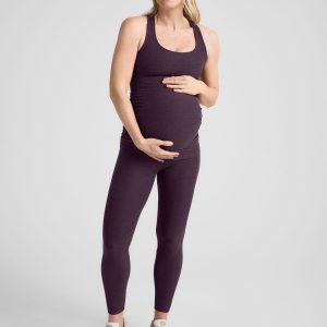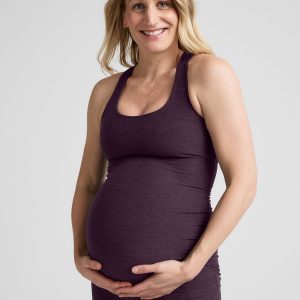 We’ve got all your bases covered with this essential maternity tank. Mama. Style sense you can feel great wearing. and comfort you can take absolutely anywhere in one active maternity tank top design. Made from our insanely soft Spacedye fabric featuring a form-flattering long length. built-in bra with medium support. racerback design and shirred sides for your best fit during pregnancy and 4th trimester.