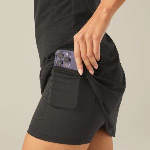 Everything you love about the Essentials dress. updated and upgraded! The same great. figure-flattering fit and soft spaghetti straps as the original. now with a new inner liner made of our latest performance fabric for even more comfort from sport to street. The only active dress with a built-in bodysuit you can wear for everything: gym to farmer’s market. hiking to grabbing a bite with friends.