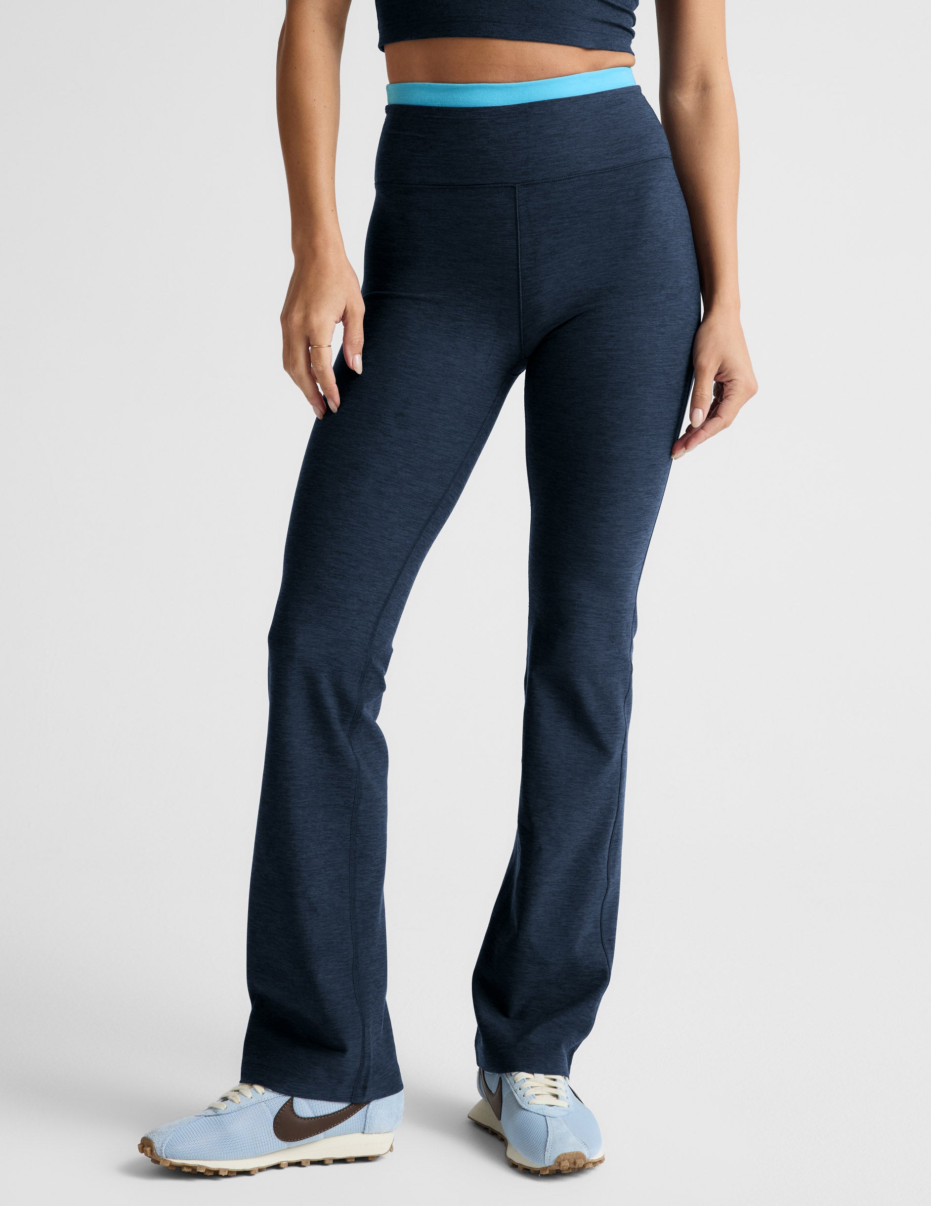 Create contrast. We took our bestselling Spacedye Bootcut Pant and added a double layer contrast waistband and forward facing side seams for extra magic.
