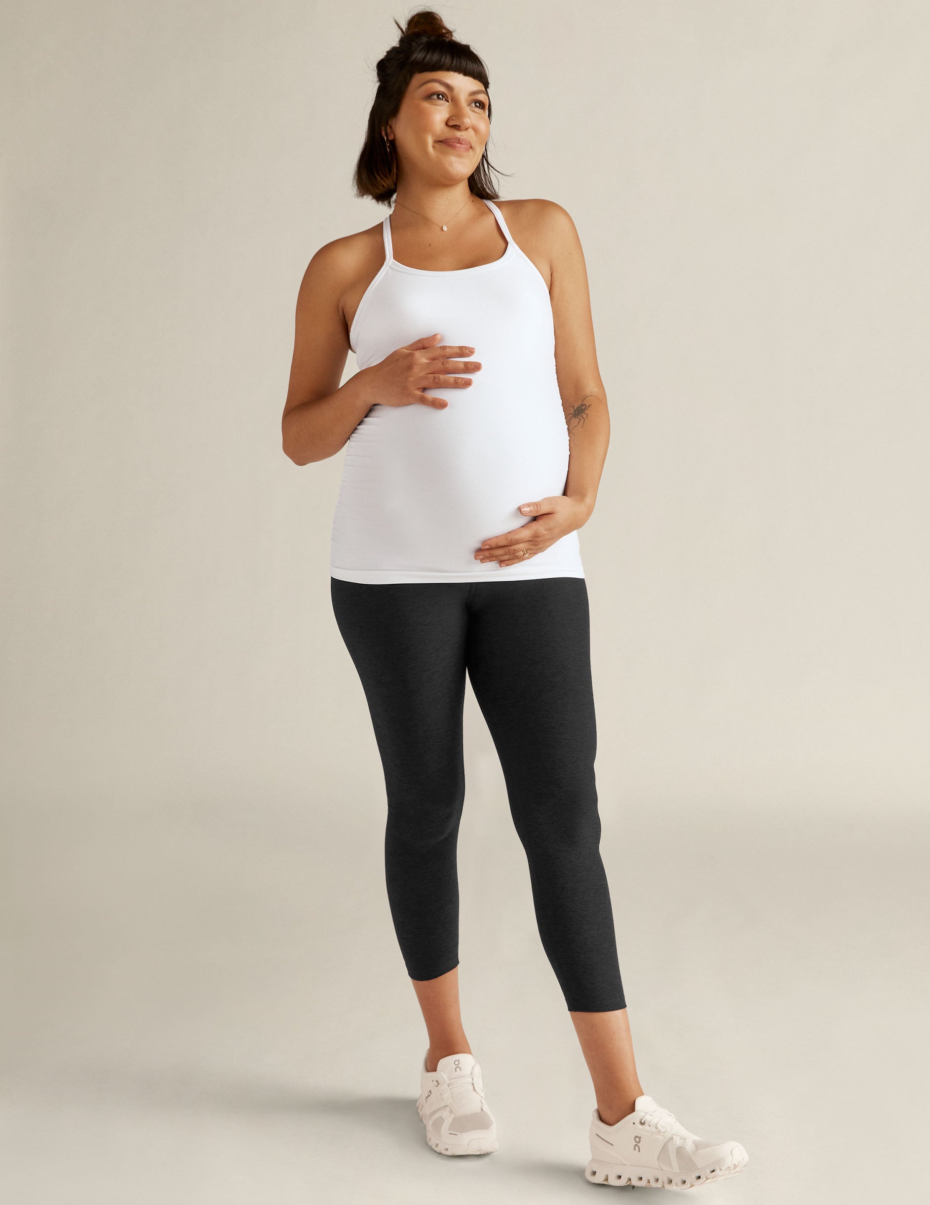 Must-have maternity leggings made from our insanely soft Spacedye fabric. featuring a capri length and an over-the-belly waistband that can be worn up or folded down. It’s the perfect blend of softness. support and style. You’ll seriously never want to take these maternity yoga leggings off. Moisture wicking. with UV protection to keep you dry and comfortable throughout each day.