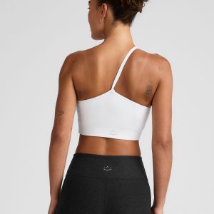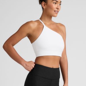 All the softness. with just a little bit of drama. somewhere between a bra and a cropped tank (aka ‘long line’). Unique one-shoulder front becomes a single strap on back. with powermesh lining on front gives the support for movement like yoga or pilates.
