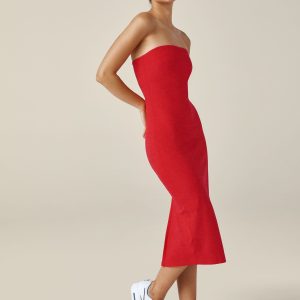 Grab brunch downtown. take a walk by the beach in the afternoon. then slide into dinner plans with one effortless look. A simple. stunning. super-soft strapless midi dress with built-in bra. beautifully fitted to show off your silhouette. We love it for travel. too: easy to pack. won’t wrinkle in your bag. and great for dressing up or down.