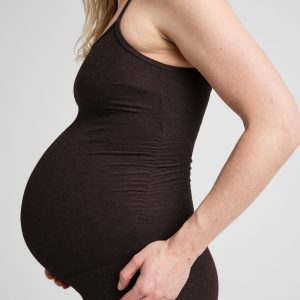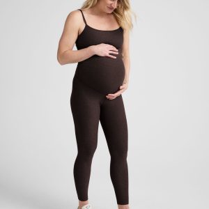 The maternity jumpsuit every Mama deserves. What could be better than head-to-toe coverage of Spacedye buttery softness and support? Jump into this: fitted throughout with light. energizing compression. shirred waist to tailor fit every stage of pregnancy. and shelf bra for medium support. A one-and-done look for comfort through pregnancy and beyond.Â