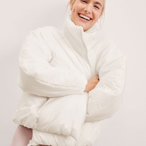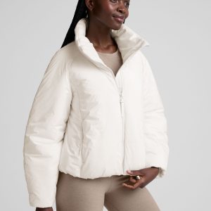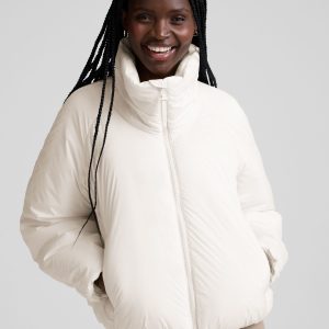 Say hi to the jacket you’ll wear all winter. Made from 100% polyester that’s warm. lightweight. and water repellant. the new cocoon-shaped Warm Up Puffer Jacket has a bubble hem and high collar. so you’ll stay perfectly cozy out in the elements.